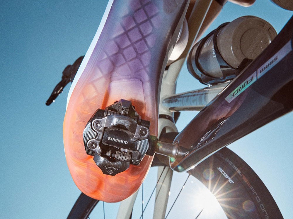 Outsole baru yang inovatif ini dilengkapi dengan lapisan TPU tread untuk meningkatkan stabilitas saat mengayuh dan kenyamanan saat berjalan di luar sepeda. Dengan indeks kekakuan 4, sepatu ini memberikan keseimbangan sempurna antara efisiensi pedaling dan fleksibilitas untuk menyerap guncangan pada medan kasar.