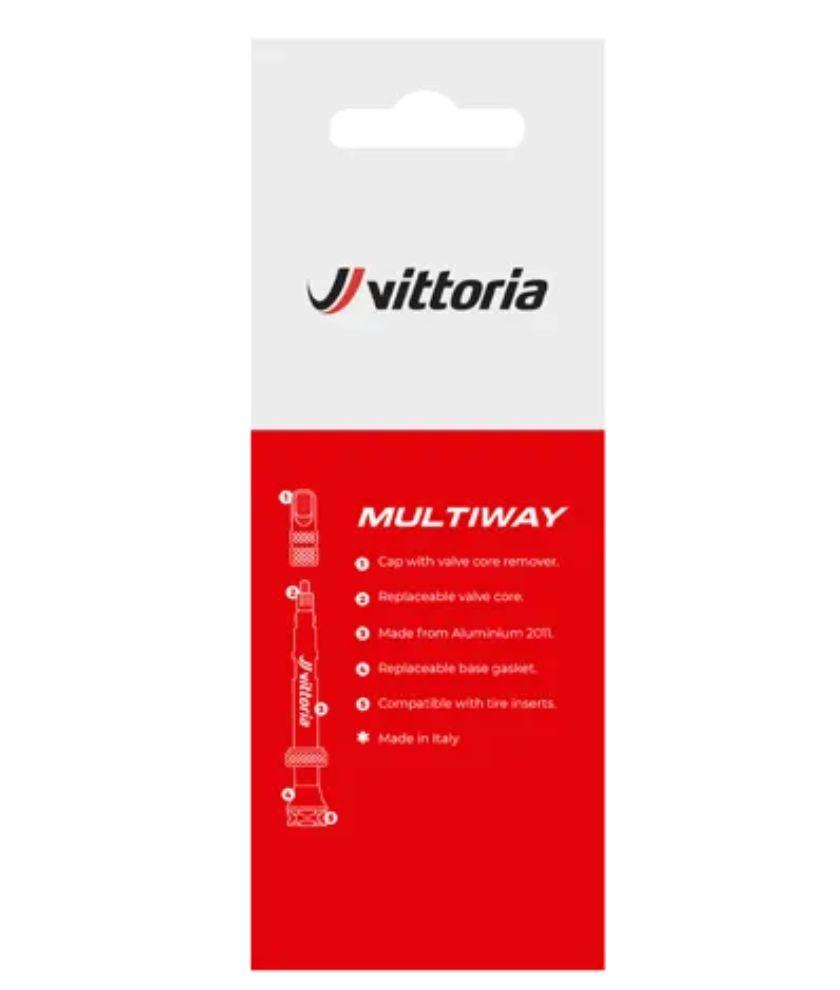 Vittoria Multiway tubeless valves are made with premium aluminum to offer ultimate durability and lightweight. The alloy cap features a valve core remover tool for easy and quick application. The Multiway valves are compatible with high-concentrated particles sealant as well as with tire inserts, making it the must-have valves for the best tubeless tire & rim set-up. Available in 40 mm, 60 mm, 80 mm and 100 mm, Vittoria Multiway valves are suitable for all types of rim depth, for both road and mtb wheels. The gasket and valve core are replaceable for extended product usability.
