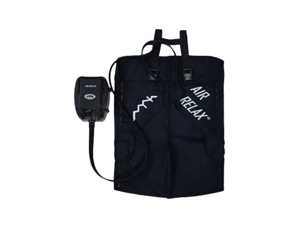 Air Relax Shorts Recovery System includes: 110V or 220V U.S. Version machine/pump, Shorts, and English Manual.Digitally Controlled Operation Cycle A Mode: Peristaltic, B Mode: Sequential, C Mode: Massage, Auto Mode: Peristaltic + Sequential, Targeted Compression Mode with 4 Pressure Levels.110-120V or 220V U.S. Household outlet. Portable, light-weight and easy to use. Low maintenance, simply wipe clean with a damp cloth. Durable case with built-in handle.Designed to target quads, hamstings, glutes, obliques, hip flexors, lower badck and abdomen.1 Year Worry-Free Warranty.Patent pending.