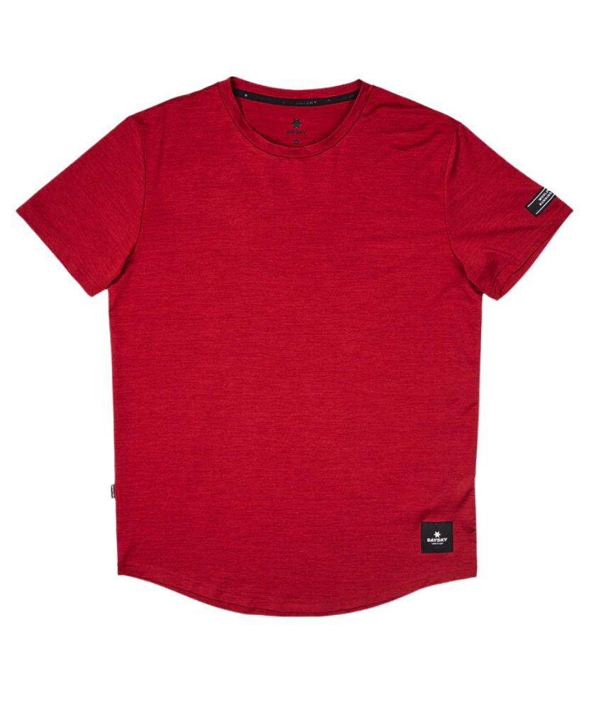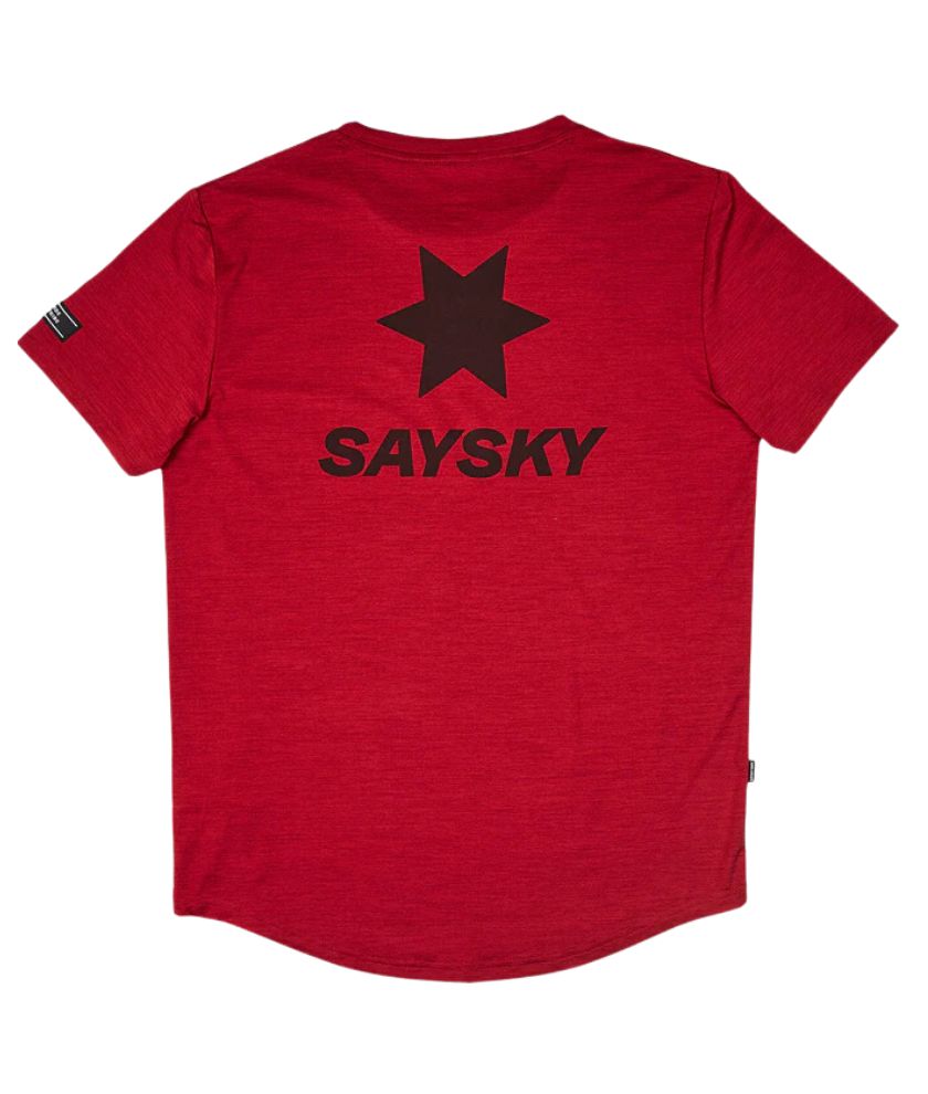SAYSKY's Classic Pace T-shirt is a unisex short-sleeved T-shirt. The red color body has black color logo patches on the front hem and arms. The back center is designed with the SAYSKY logo in the same color as the body color. Designed for a regular fit, the fabric is soft to the touch and highly breathable.