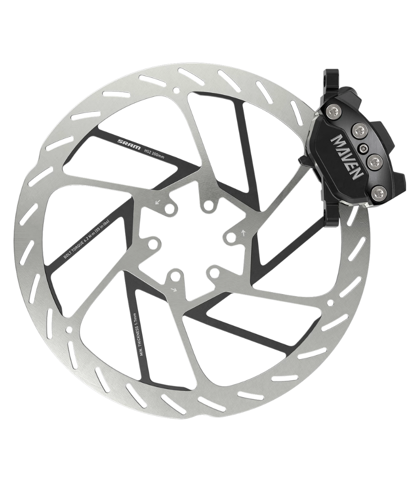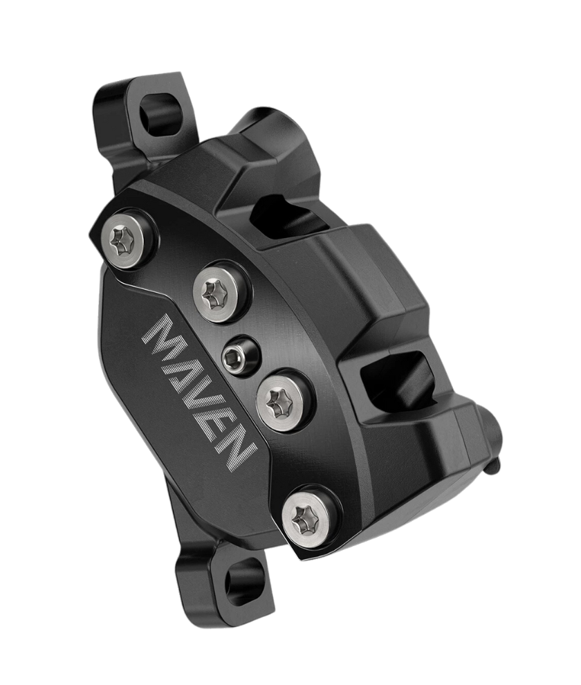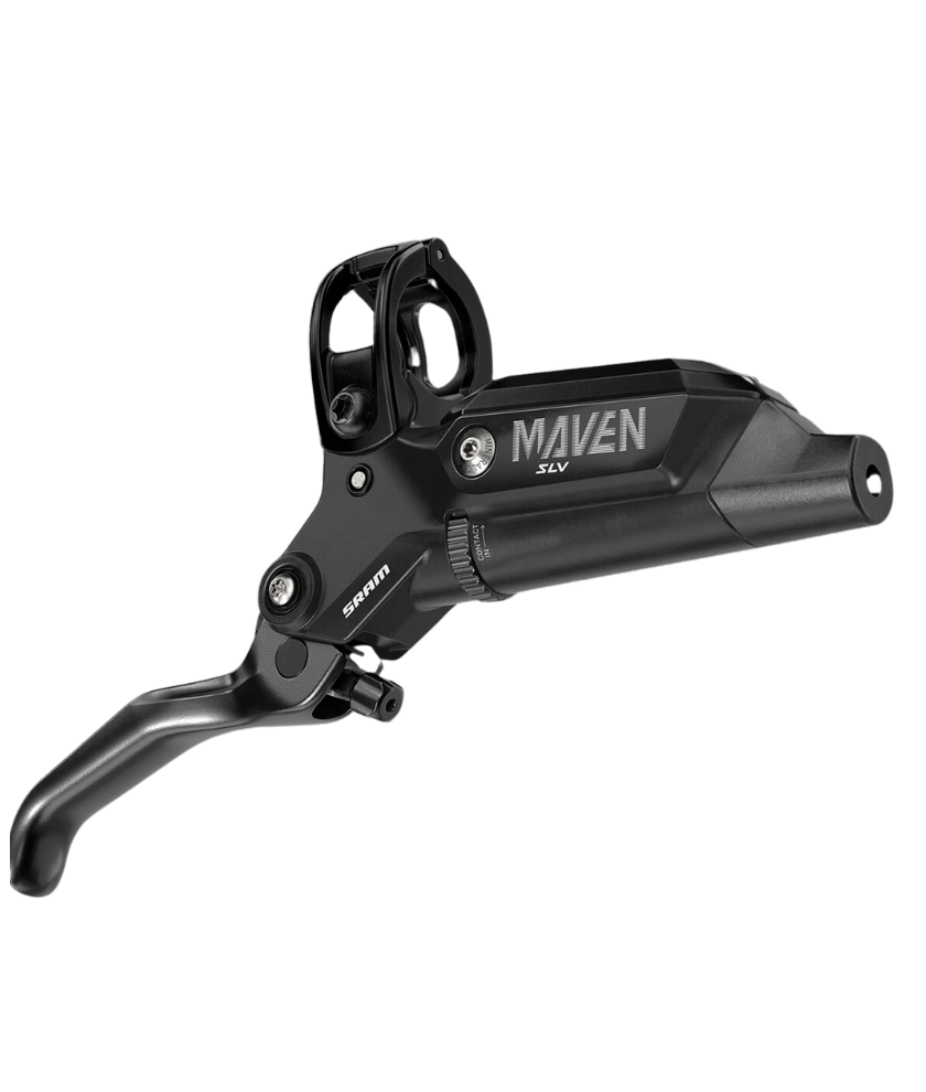 Modern mountain bikes have redefined what riders are capable of, pushing the requirements for heavy-duty power further than ever before. Maven Silver is our answer to that evolution, with monstrous 18 and 19.5-millimeter pistons driving 50% more power than Code. But best-in-class power means nothing unless you’re able to harness it. Swinglink translates rider input for progressive power throughout the lever pull, maintaining SRAM’s signature ride feel. And because of a stiff 4-bolt caliper that sheds an incredible amount of heat, that feel remains consistent, so the last corner feels like the first corner. But with so much baseline power on hand, there is more range than ever before to tune the ride qualities to exactly how you want with different pad materials, and rotor sizes. Maven Silver features a bold black anodized finish with stainless hardware. And for unrivaled ease of customization, features tool-free Reach and Contact Point Adjust.