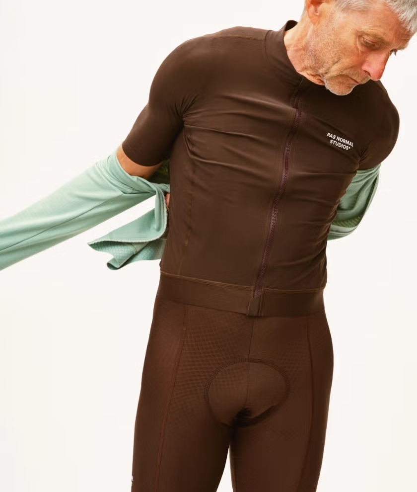 Constructed from premium compressive and durable textiles, the fully-dyed fabric is presented with an internal, custom Pas Normal Studios grid structure, providing excellent stretch for optimal comfort on the bike.