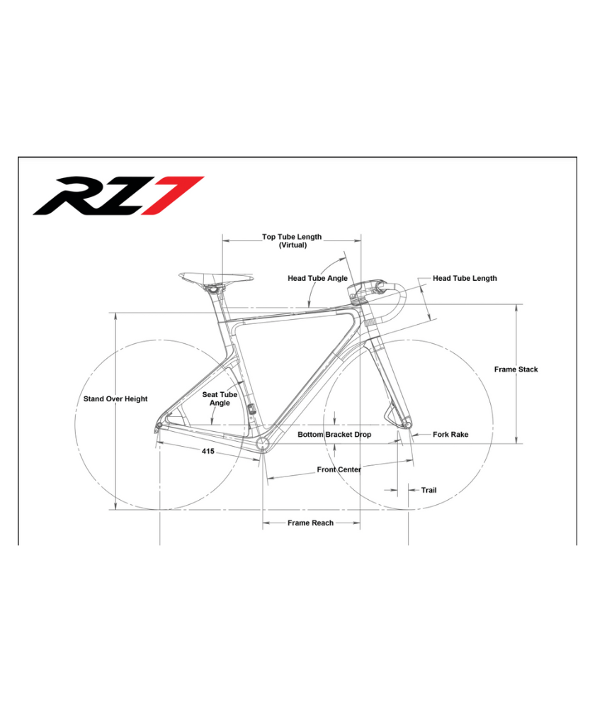 RZ7, carbon disc, tapered steerer, integrated crown race, 12mm through axle, integrated SpeedShields
