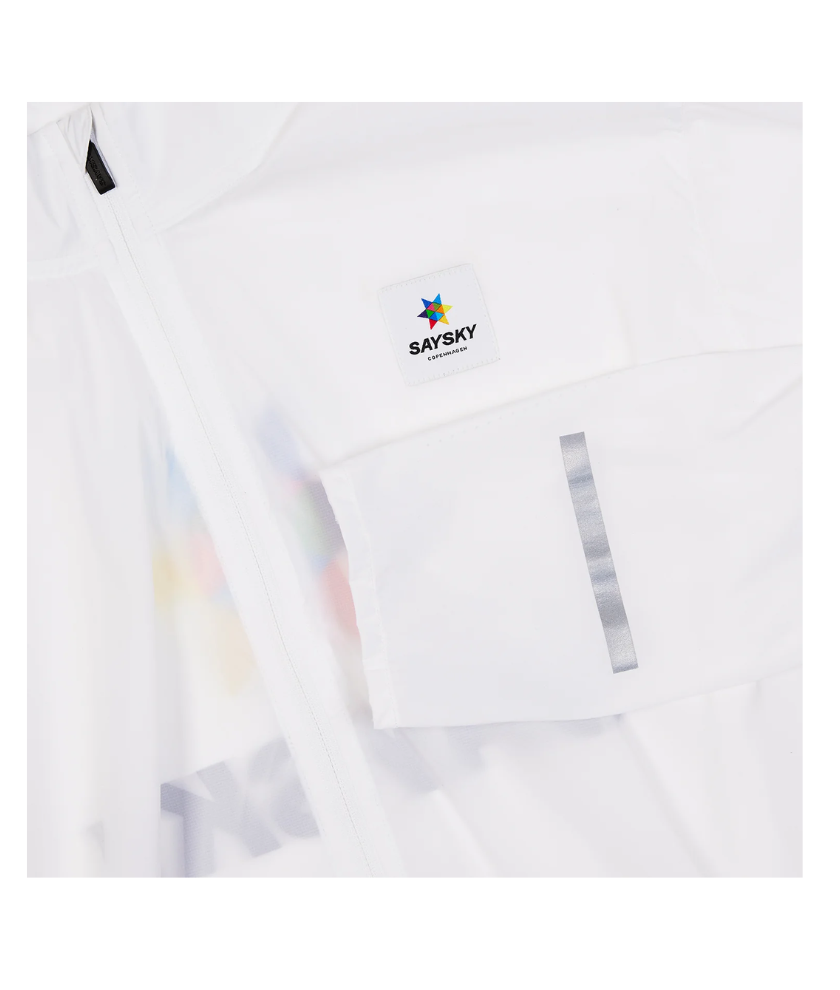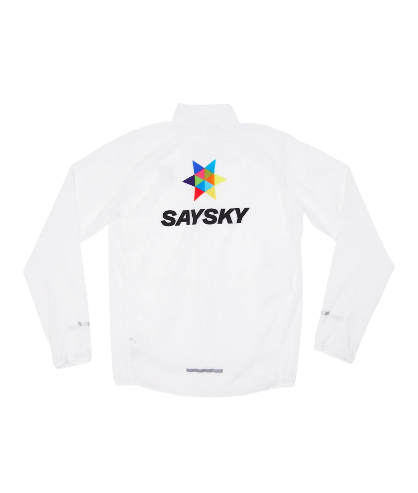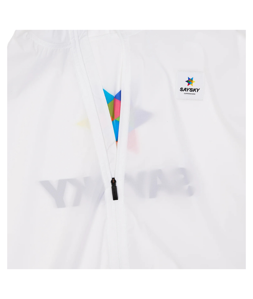 The SAYSKY Heritage Pace Jacket is a unisex running jacket designed to withstand the wind. The jacket comes in white with the original multi-coloured magic star. The fabric is lightweight to provide a comfortable fit and ensure high breathability for the body.