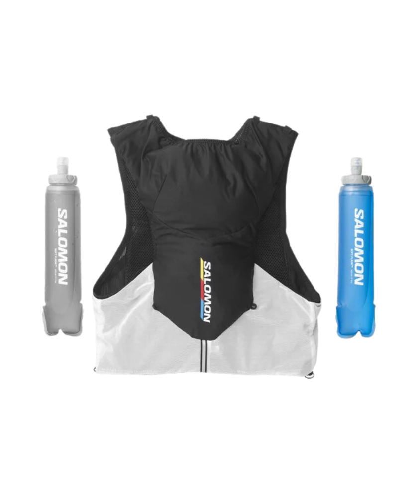 Designed to fit Salomon soft flasks, these front pockets limit bouncing. Top elastic loops secure your flasks and keep them ready to drink.