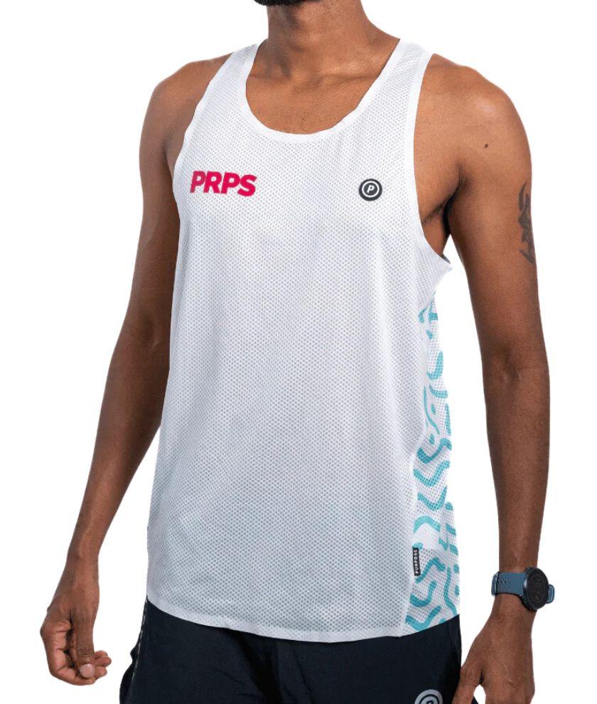 Official Team PRPS design with HYPERMESH™ PRO. Developed for running in hot and humid or dry conditions. These running tops are made of specially constructed fabric with the most advanced polyester and elastane weave technology. Designed to keep you cool for hours.