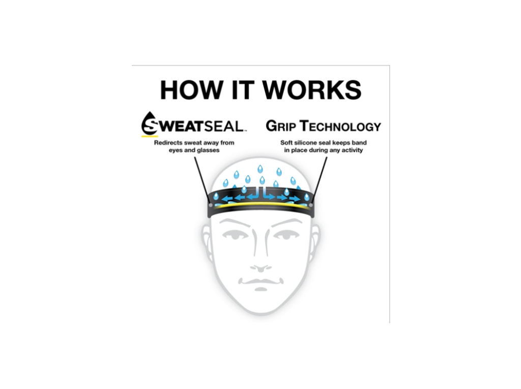 Patented SweatSeal® forms a water-tight seal that channels sweat back and away from the eyes and face!