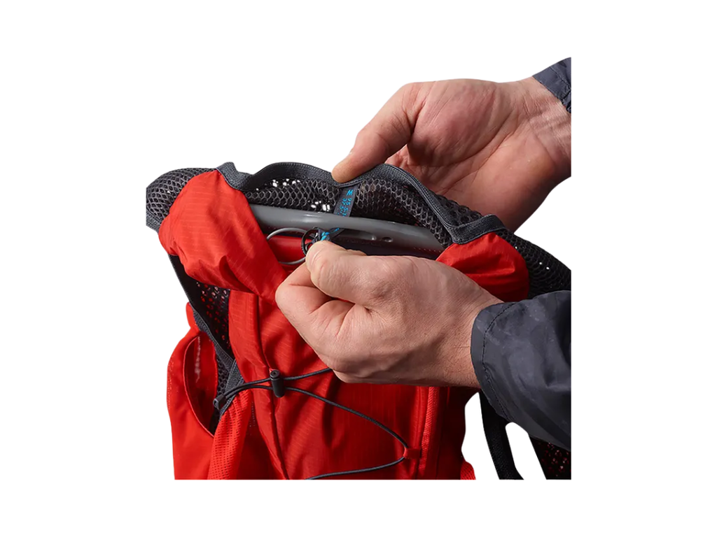 This soft flexible reservoir shapes to fit your bag and shrinks as you drink to limit water bounce. The new slider is also softer on your back.