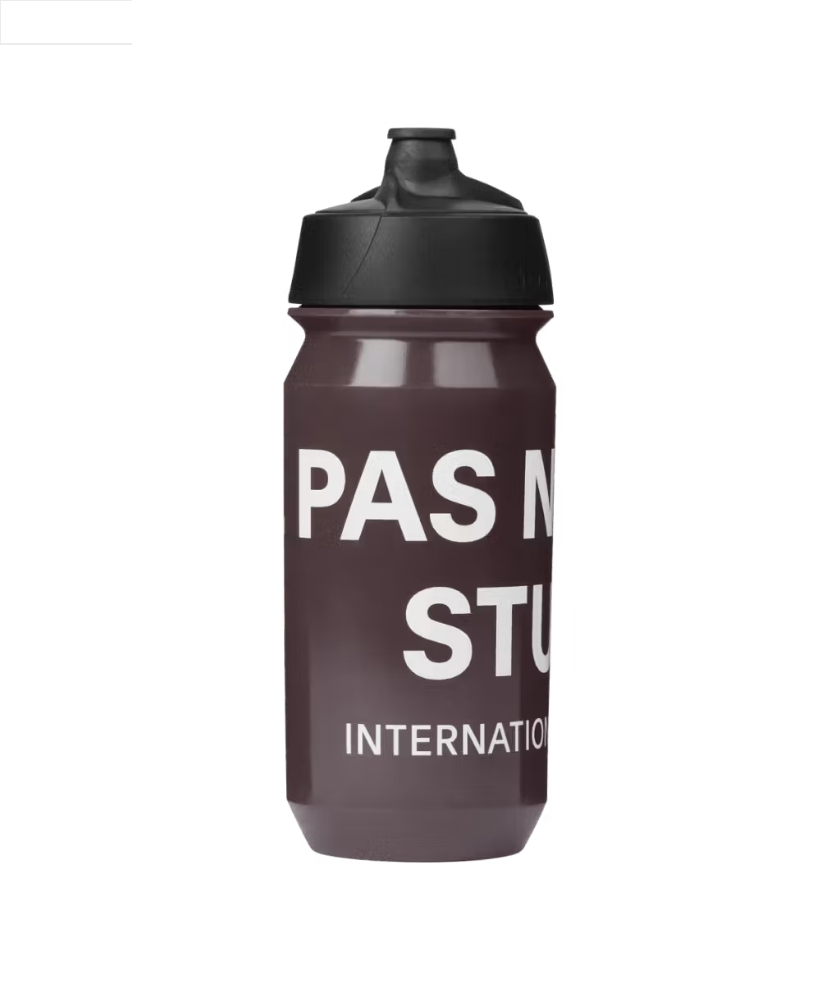 A functional and visually appealing bidon featuring an oversized Pas Normal Studios logo. With its innovative membrane and lockable valve, this bidon is easy to use, allowing you to effortlessly rehydrate on your ride.