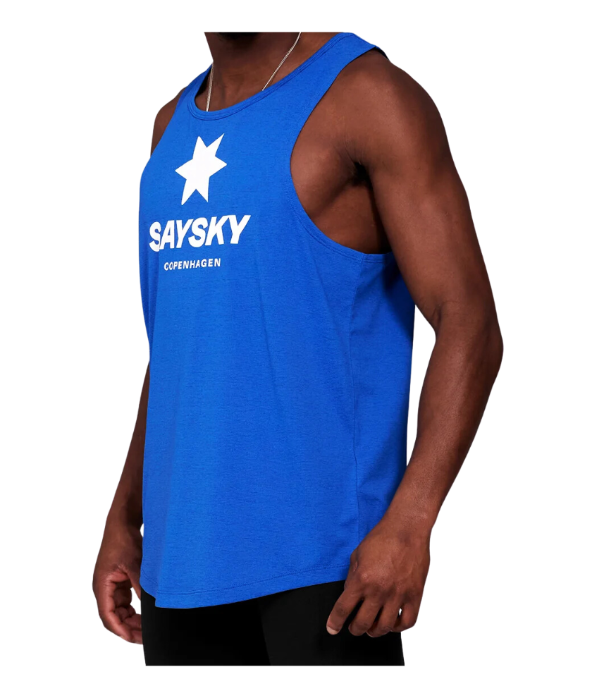 The SAYSKY Combat Logo Singlet is a regular race singlet in blue with a SAYSKY logo on the front and a woven label on the back. The singlet is moisture-wicking and quick-drying, which ensures high breathability and increased airflow. The technical construction reduces the fabric’s ability to cling to your skin. It is made of 100% recycled Japanese polyester, which is a high-performance lightweight material that feels soft against the skin and offers high flexibility.