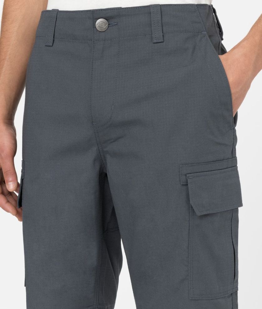The Millerville is a classic cargo short with a regular fit and classic Dickies detailing. Featuring two side cargo pockets with hidden snap closure for carrying the essentials and a durable double knee panel reinforcement. This timeless utility short is crafted from our hard wearing 100% cotton ripstop fabric that is built to last.