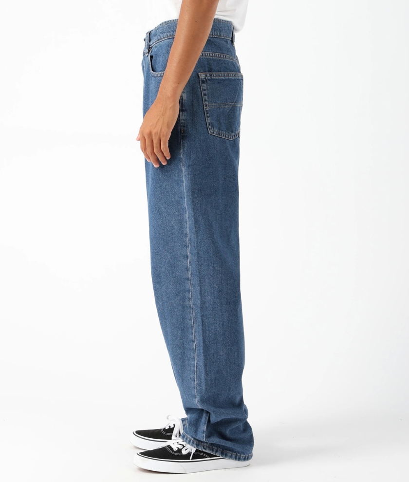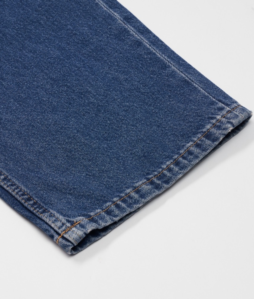 These pants are made from 100% cotton denim. The silhouette is roomy around the waist and has a clean leg line. The simple design makes them easy to match with any item, making them a great staple in your wardrobe. They're a piece that's sure to become a popular daily item.