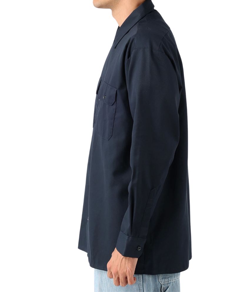 The Dickies Men's Long Sleeve Work Shirt is one of our classic designs, providing both comfort and style. Made to last, this dependable work shirt, made of durable fabric, has a functional build and non-break melamine buttons. This iconic design features a generous cut through the shoulders and chest that provides freedom of movement. Advanced moisture-wicking technology and an easy-care stain release finish makes this work shirt perfect for both the workplace and for fun after work. The shirt also has two functional chest pockets, including one with a pencil division, doghouse sleeve plackets, and a woven Dickies logo label.
