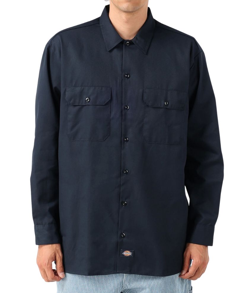 The Dickies Men's Long Sleeve Work Shirt is one of our classic designs, providing both comfort and style. Made to last, this dependable work shirt, made of durable fabric, has a functional build and non-break melamine buttons. This iconic design features a generous cut through the shoulders and chest that provides freedom of movement. Advanced moisture-wicking technology and an easy-care stain release finish makes this work shirt perfect for both the workplace and for fun after work. The shirt also has two functional chest pockets, including one with a pencil division, doghouse sleeve plackets, and a woven Dickies logo label.