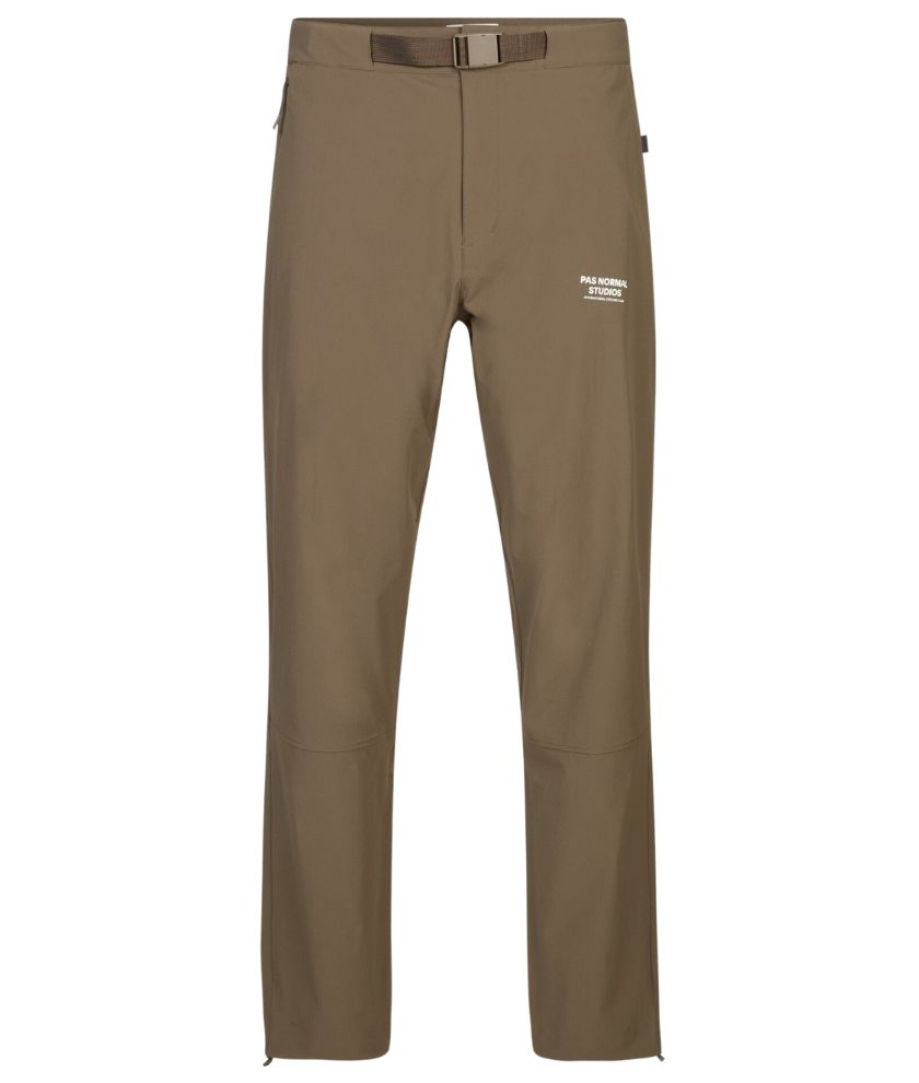 The Off-Race Pants are a smart, functional piece for year-round use. These pants take on a casual fit while retaining highly stretchable properties to move with you through your daily life. Taking you easily from the streets to the trails. Completed with a canvas waist section, dual snap-fasteners with an additional locking buckle. The Off-Race Pants feature pocket zippers and zip pullers throughout and are treated with a DWR finish to keep you protected from the elements. The Pas Normal Studios Off-Race Pants come in two new seasonal colourways: Beige and Green.
