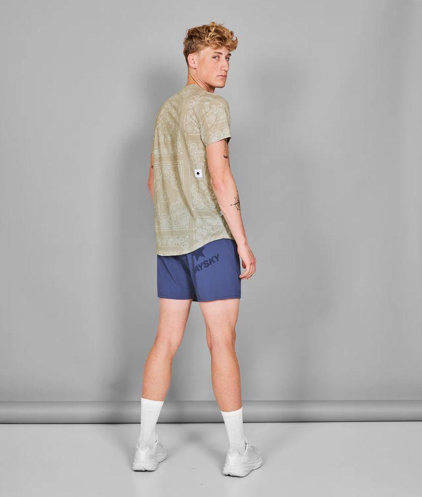 The SAYSKY Paisley Combat T-shirt is a running t-shirt with an allover Saysky paisley print; it has a woven label on the front and back. The t-shirt is moisture-wicking and quick-drying, which ensures high breathability and increased airflow. The technical construction of the fabric reduces the fabric’s ability to cling to your skin.