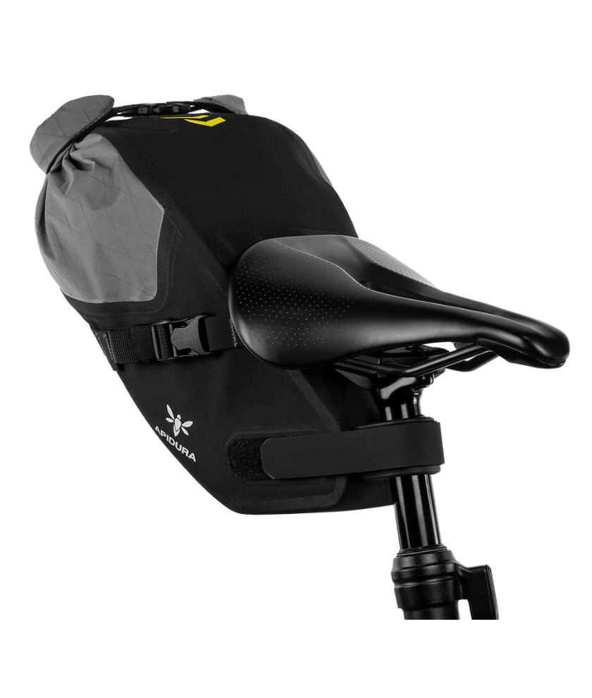 The saddle bag is available in three sizes for adventures long, short & in-between, with all three being optimized for bikes with limited clearance. Additionally, the roll-down compression and closure system mean the saddle bag’s volume can be tailored precisely to fit a range of packing needs. This bag is compatible with dropper posts when used with a Dropper Post Adapter.