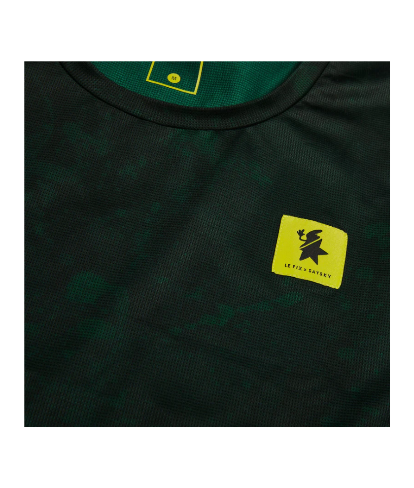 The LE FIX x SAYSKY Combat Singlet is a regular unisex race singlet in dark-green with unique LE FIX x SAYSKY labels on the front and back. The singlet is moisture-wicking and quick-drying, which ensures high breathability and increased airflow. The technical construction reduces the fabric’s ability to cling to your skin. It is made of 100% polyester, which is a high-performance lightweight material that feels soft against the skin and offers high flexibility.