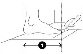 4. Then use a pen to draw a line just in front of your big toe. Repeat for both feet and take the longer distance to determine your size.