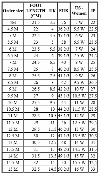 | Size | 41 1/3 or 42 or 43 1/3 or 44 2/3 or 45 1/3 or 48 |