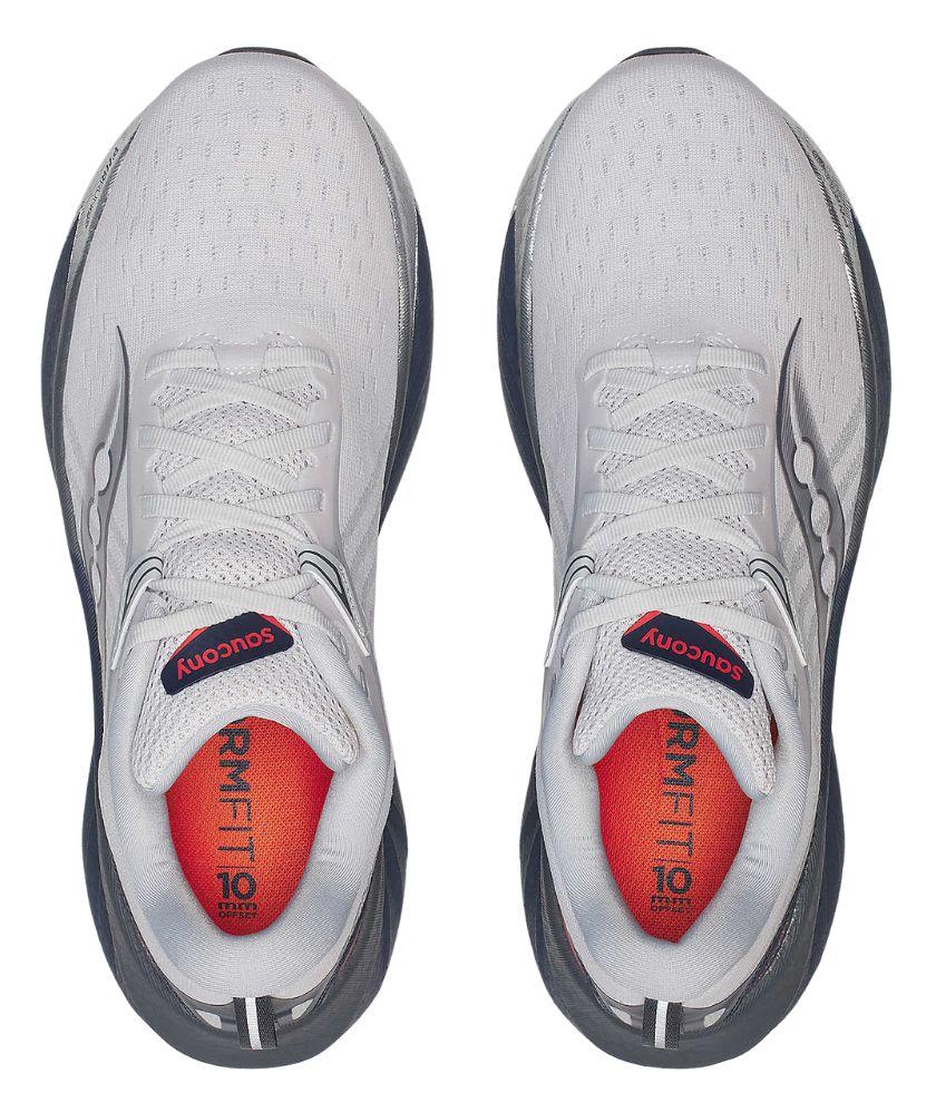 • Neutral Cushioning shoes have a traditional hourglass shape to provide a well cushioned ride but with a nimble transition from heel to toe.