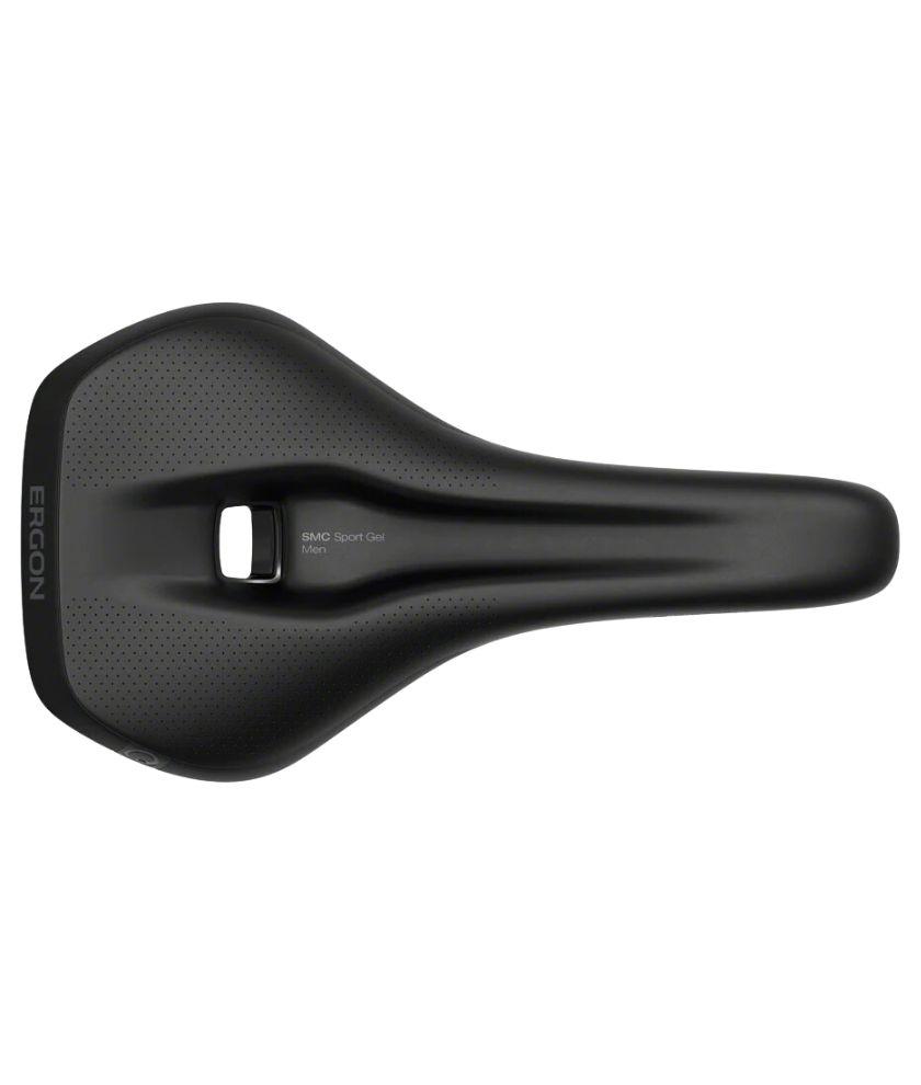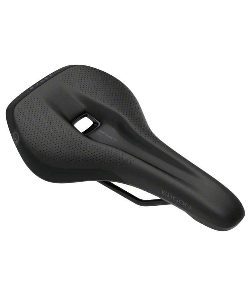 Ergon SMC mountain bike saddle. Further refined for even more comfort, the orthopedic foam is thicker, softer and creates a large contact area. Features a flat seat for dynamic sitting in different positions without tilting effects.