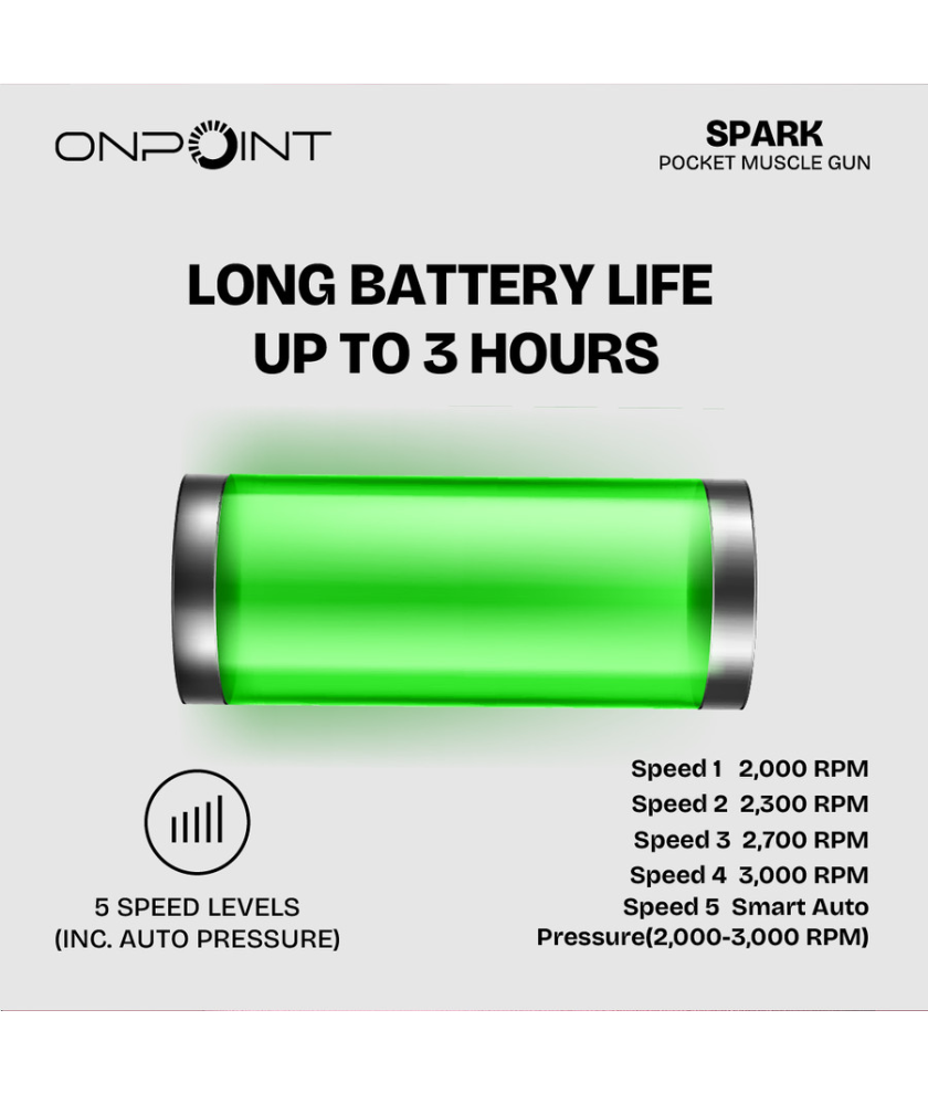The Spark Pocket Muscle Gun is a small, portable massage device designed to aid muscle recovery and relieve tension after physical activity. Its compact size makes it easy to carry and use anywhere, whether at home, in the gym, or while traveling.