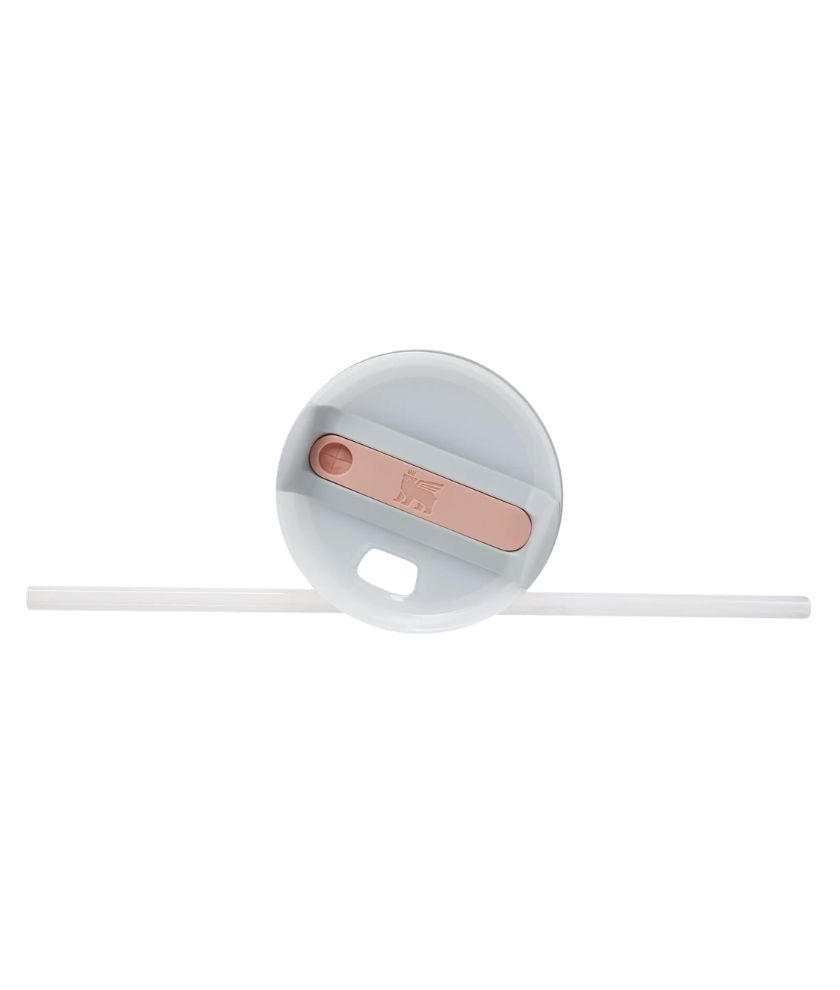 The lid rotates to the straw opening, drink spout opening, or closed position.