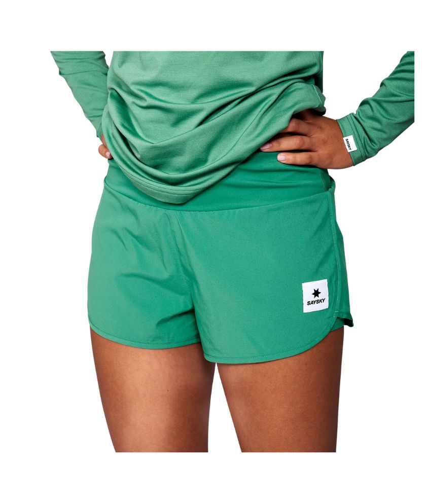 The SAYSKY Pace Shorts 3'' are a classic pair of running shorts in green for women. The fit is regular and they come with a woven SAYSKY label on the front and a SAYSKY logo on the back. These shorts are equally great whether you're going for a run or hitting the gym.