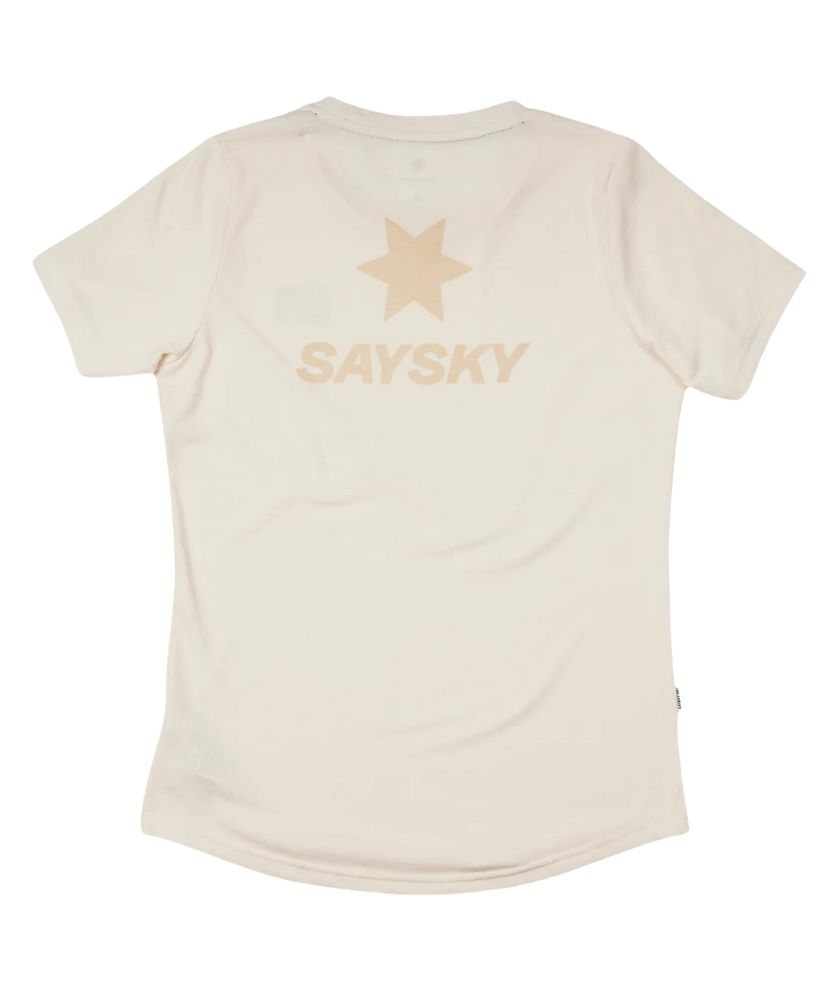 The SAYSKY Logo Motion T-shirt is a short sleeve t-shirt for women from our Motion series. It comes in the color white and features a woven SAYSKY logo on the front and a classic one on the back. It is made in soft Tencel mixed with polyester, resulting in a very comfortable performance product. The t-shirt has a casual fit and a light feel, which is perfect for workouts, running and everyday wear.