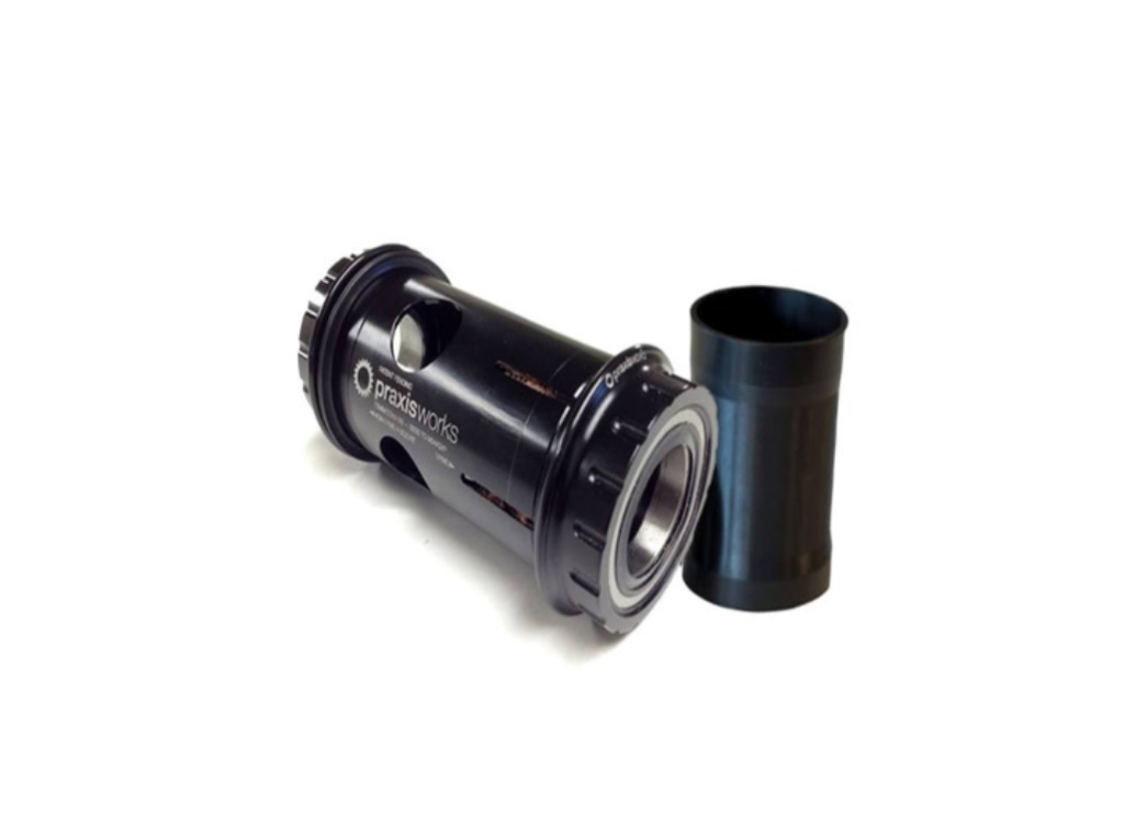 A patent-pending design from Praxis Works, designed as a bottom bracket converter for SRAM GXP/ISIS2 cranks in either BB30, PF30 or Specialized’s OSBB road frame bottom brackets. The Praxis Works 73mm GXP MTB Bottom Bracket Converter BB30/PF30 keeps the cartridge bearings outboard of the frame on SRAM spec for greater rigidity and free of frame/c-clip tolerance issues that other systems deal with.