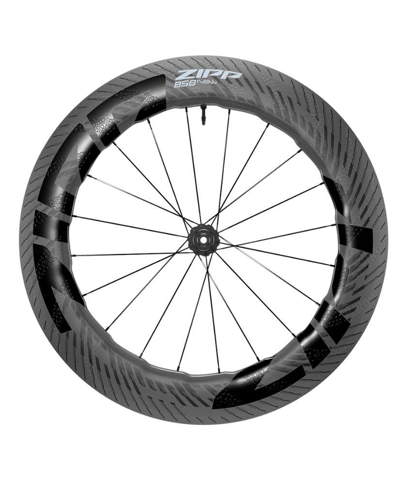 The 858 NSW wheels offer the aerodynamic benefits of tall rims at a weight normally achieved with a 20 mm lower profile height. This is made possible by ZIPP's Carbon Internal Reinforcement (CiR) technology, which achieves a weight reduction of 10 percent, or 280 grams, over the previous model without compromising rim stability. The undulating rim shape with slightly iridescent profile height, in concert with the sophisticated ABLC Sawtooth™ Dimple Design, which on the 858 NSW features different sized Hyperfoil dimples in a HexFin arrangement, results in ZIPP's highest-performing design in terms of aero efficiency and crosswind stability.