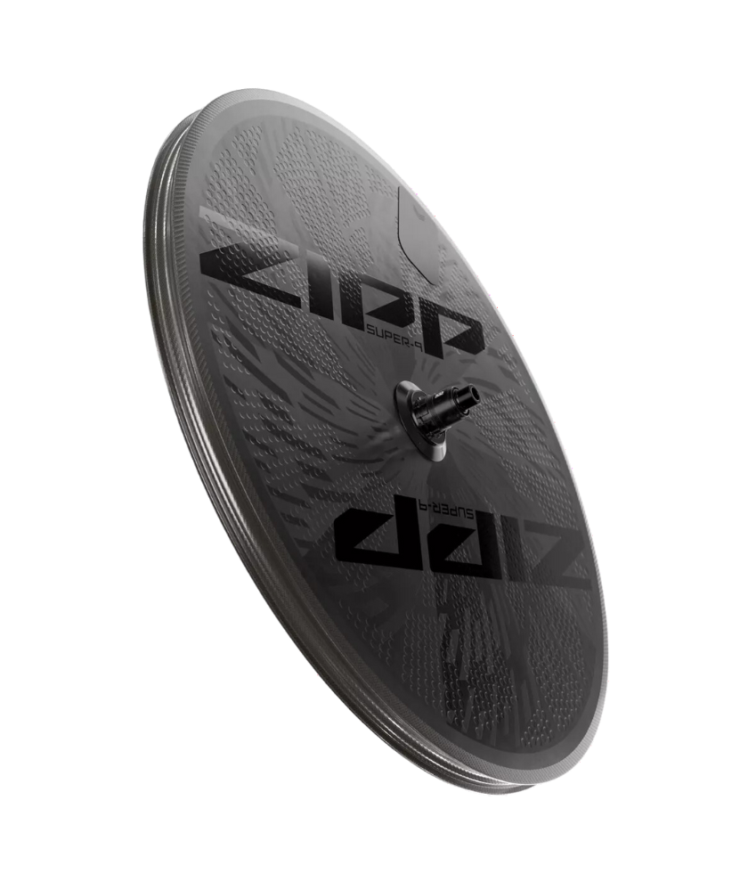 Smoother is faster with the Zipp Super-9 Tubeless Disc-Brake Disc. Among the lightest disc wheels available, the Super-9 is a superior addition to your modern triathlon and time trial bike. Its refined shape runs wide and parallel from the hub until it feathers inward as it meets the hookless tire bed. Thanks to Zipp’s Total System Efficiency (TSE) carbon laminate and design, the Super-9 is engineered for a new era of wider tires and lower tire pressure in TT and triathlon. Zipp bases its TSE approach to wheel design on a simple premise: Efficiency equals speed, perfect pavement or not. Combining Zipp’s wheel laminate with a wider rim profile and optimized tire interface helps you overcome the four barriers to speed: wind resistance, gravity, rolling resistance, and vibration losses. Guided by TSE, Zipp remade the Super-9 from the rim-tire interface to its ceramic bearings. The result is less wasted effort for you. For triathletes, that means you’ll have more energy for the run. The Super-9 pairs perfectly with Zipp’s current tubeless front wheels. The “old idea” is that it is always faster to pump up your tires rock hard before a time trial or triathlon. You felt every bump as you almost literally bounced down the road. Experiencing Zipp’s dual innovations of hookless and TSE, riders on the Super-9 realize a disc wheel does not have to feel rigid to be fast. The Super-9 is fastest with 28mm tubeless tires inflated to lower than traditional pressure. So, beyond speed gains, you’ll experience better handling and cornering on course in a disc significantly stiffer and more durable disc than its predecessor. Optimal tire pressure is crucial to maximizing speed on the bike. To ensure proper inflation, the Super-9 comes with the TyreWiz 2.0 tire-pressure monitor integrated out of sight and perfectly balanced so you’ll always know if you’re in your desired PSI/bar range. Inflation is a breeze with redesigned pump access. Moreover, the disc features a redesigned pump-access port—no stickers needed. The Super-9 features the premium ZR1 hub with ceramic bearings and 66 points of engagement.