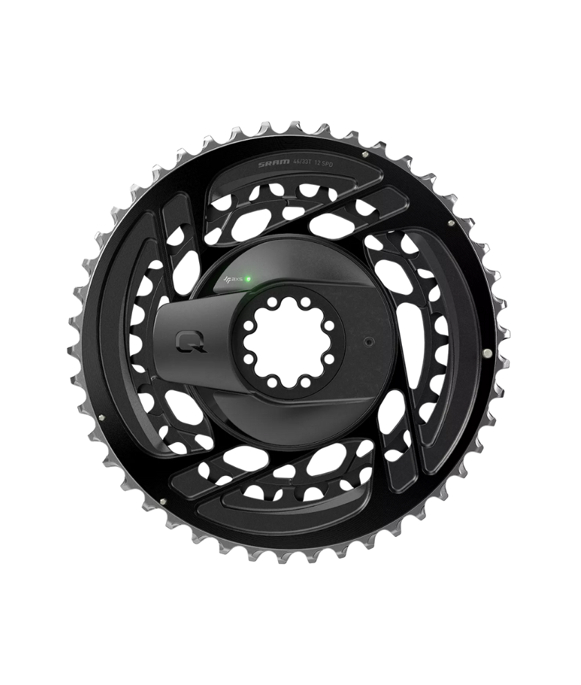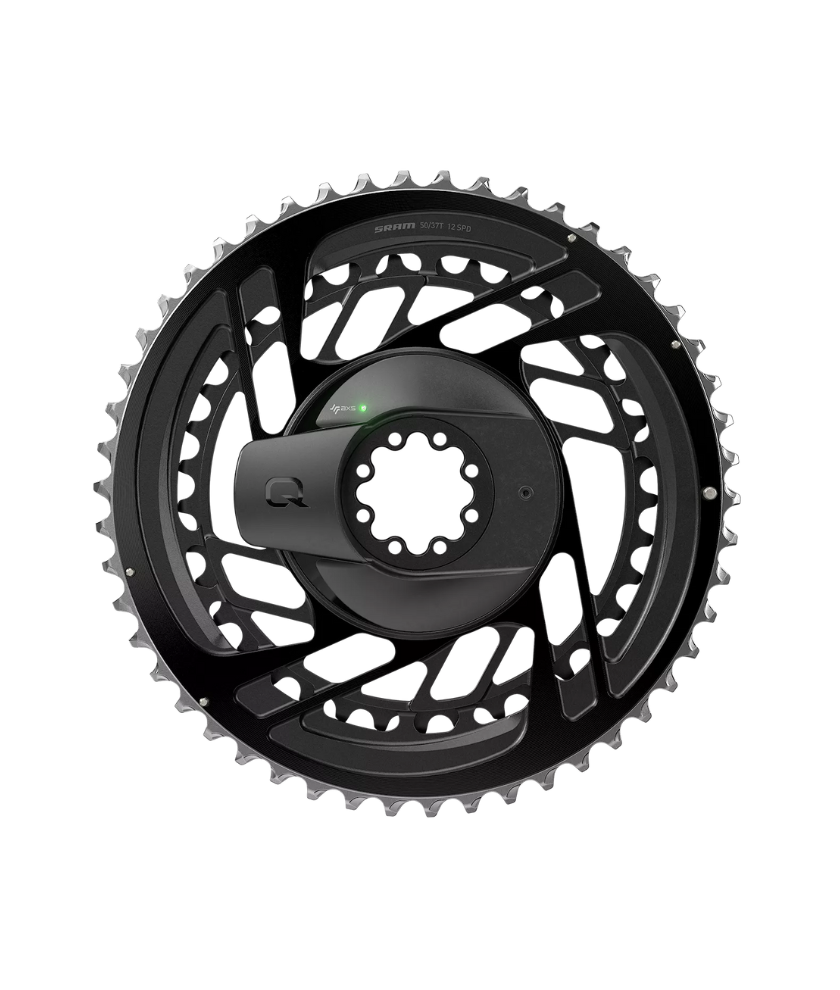 Power meter is fully integrated into the chainring set for lighter weight