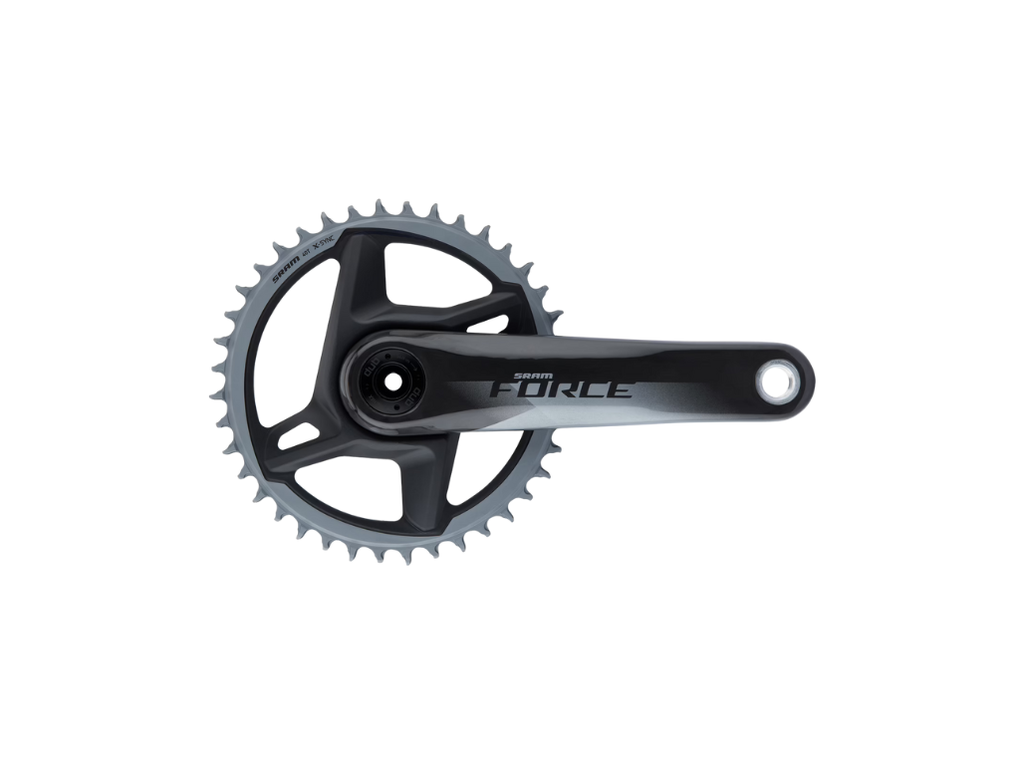 The SRAM Force 1 DUB crankset with carbon crank arms is suitable for 1x12-speed drives and optimized for gravel use due to its " Wide" chainline. " Wide" means that the crank produces a larger chainline of 47.5 mm, resulting in more tyre clearance. The X-Sync™ chainrings are mounted via Direct Mount. With DUB technology, the crankset is durable, easy to install and perfectly matched to DUB - bottom brackets.
