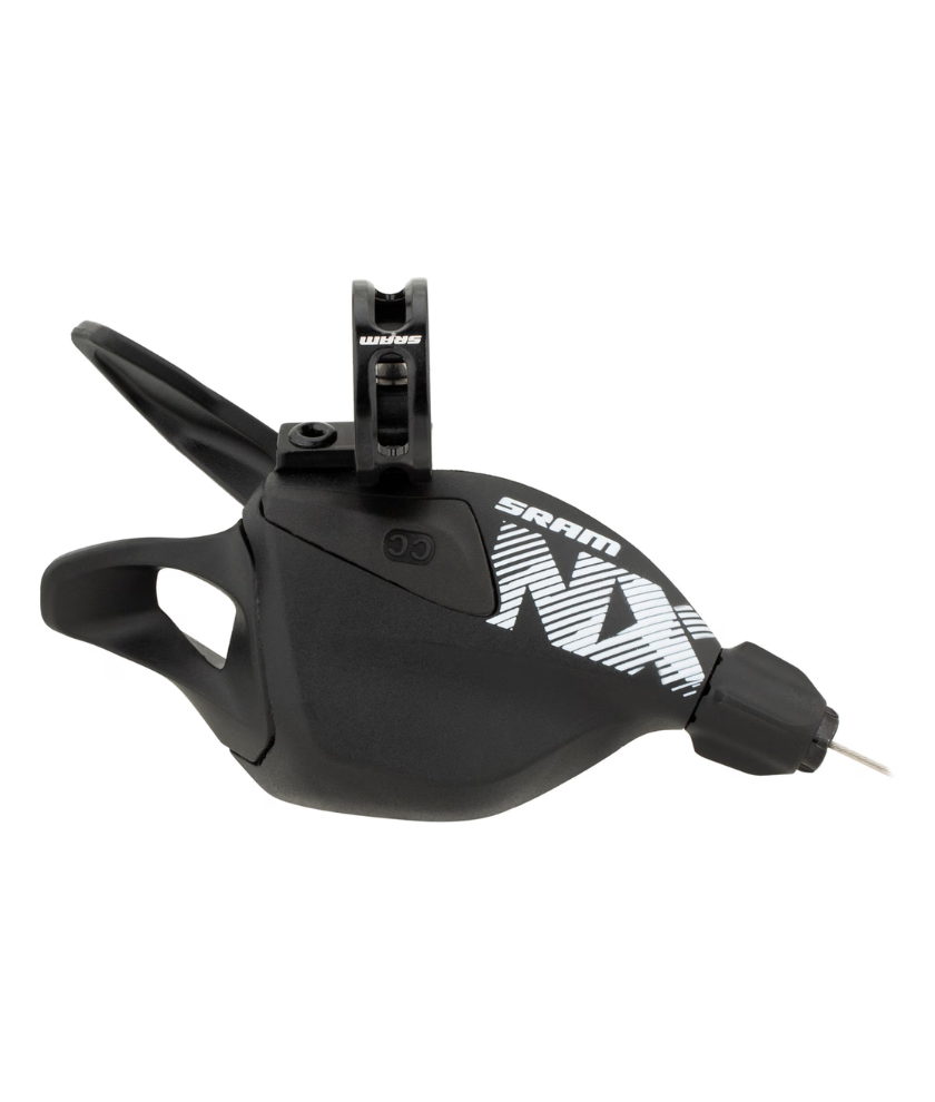 This is SRAM's NX Eagle Trigger Shifter. The shifter features ZeroLoss™ technology which means when you press the lever to shift, the cable is instantly engaged. Another feature of the NX Eagle Trigger Shifter is its X-Acuation. X-Actuation retains the shifter's sharp and precise shifting across the whole cassette. SRAM's MatchMaker X Integrated mounting system allows you to mount this shifter on Sram brake levers. The NX Eagle Trigger Shifter brings the quality of the XX1 Eagle shifting to every level of rider.