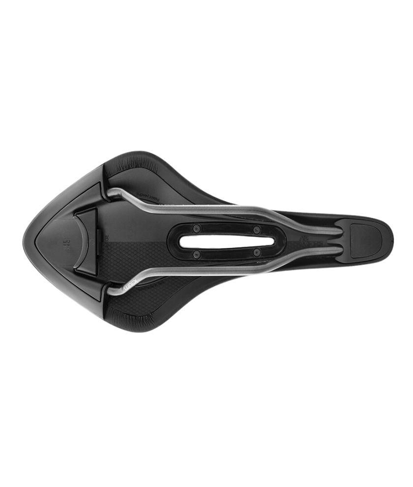Arione R3 Open features a composite Carbon-reinforced nylon shell and a light, strong, corrosion-resistant Kium rail. A Comfort Core foam layer beneath the neat, durable Microtex cover provides comfort, which is enhanced by the full anatomic cut-out that avoids pressure on the rider’s sensitive soft tissue and ensures that all weight is correctly supported across the whole surface of the saddle.