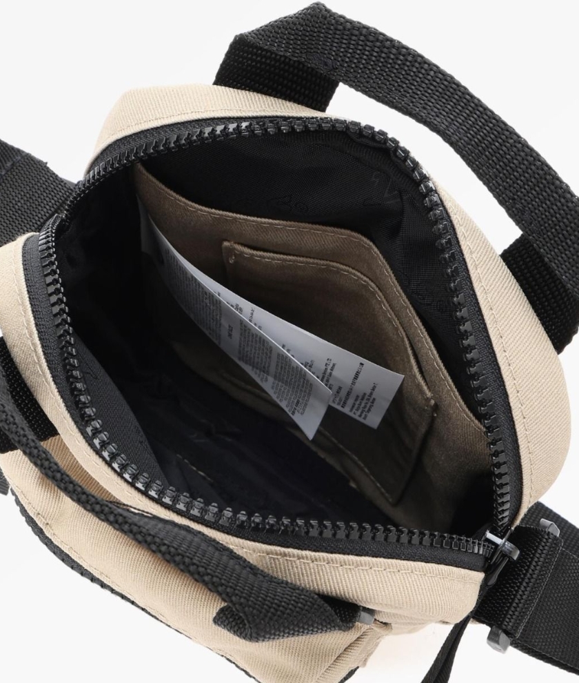 Shoulder bag with contrasting color design. The front has a brand label. The large front pocket with a wide bottom is another convenient feature. Inside the main compartment there is a small pocket, making it efficient to use. It can carry essentials compactly. Suitable for all occasions such as traveling.