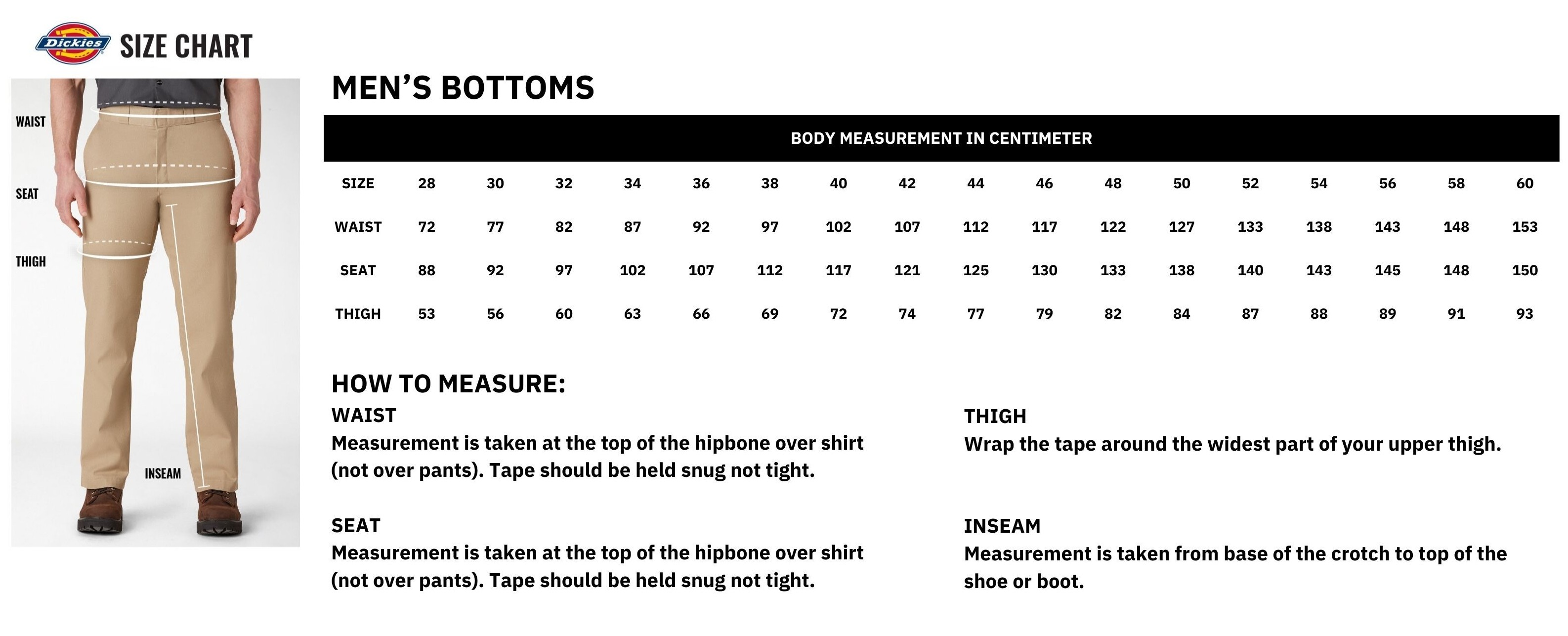 This size uses the W/L size standard, where W stands for waist and L stands for length (Inseam).