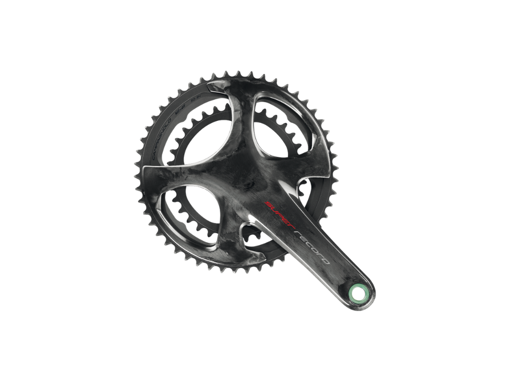 The use of ceramic Cult bearings leads to obtaining the smooth ride that the Campagnolo brand is known for. The innovative design of the outer chainring ensures faster, quieter derailing owing to the contoured pin. The symmetrical design of the inner chainring teeth allows improved stability with chain crossovers. The double wheel sizing standards (112 and 145 millimetres) combined with the eight fixing screws, optimises weight and stiffness through the increased use of carbon fibre.