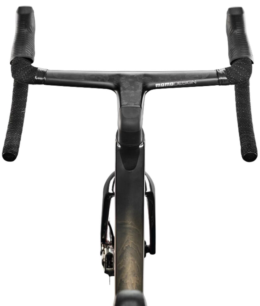 Exceptional aerodynamics meet comfortable control. For the new SuperSix EVO’s cockpit, we partnered with the legendary MOMODesign. Using drag-reducing shapes, sleek cable integration, and race-proven materials, the collaboration brings a new level of speed, style, and ergonomic refinement to the EVO's command center.