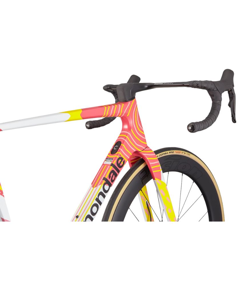 There are “team edition” bikes – with little more than pro paint and decals – and then there are real, 100%-team-spec, pro-ridden race bikes, like this replica of the LAB71 SuperSix EVO piloted by EF Education First–EasyPost and EF Education First–Cannondale. It’s a true pro machine, built on an ultra-light Series 0 carbon construction frame, with Shimano Dura-Ace Di2, an FSA PowerBox power meter, our SystemBar R-One one-piece carbon cockpit, and Vision Metron 60 SL wheels.