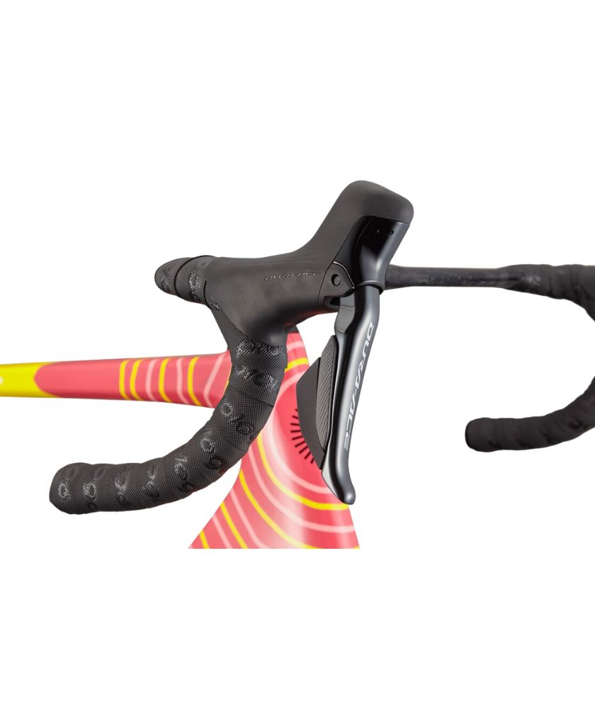 Exceptional aerodynamics meet comfortable control. For the new SuperSix EVO’s cockpit, we partnered with the legendary MOMODesign. Using drag-reducing shapes, sleek cable integration, and race-proven materials, the collaboration brings a new level of speed, style, and ergonomic refinement to the EVO's command center.