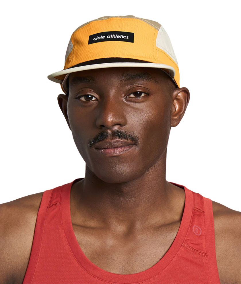 our SOFTflat brim for long run comfort and easy, no stress packability. the iconic bar logo on the front is reflective for dusk through dawn lowlight runs.