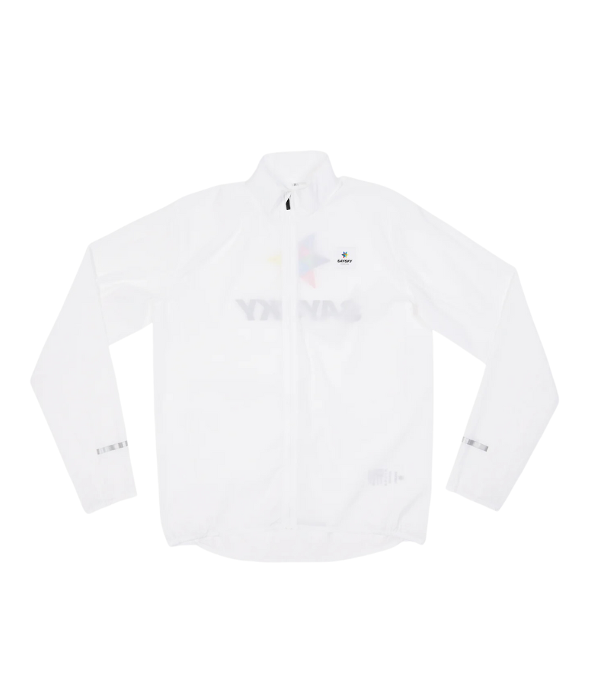 The SAYSKY Heritage Pace Jacket is a unisex running jacket designed to withstand the wind. The jacket comes in white with the original multi-coloured magic star. The fabric is lightweight to provide a comfortable fit and ensure high breathability for the body.