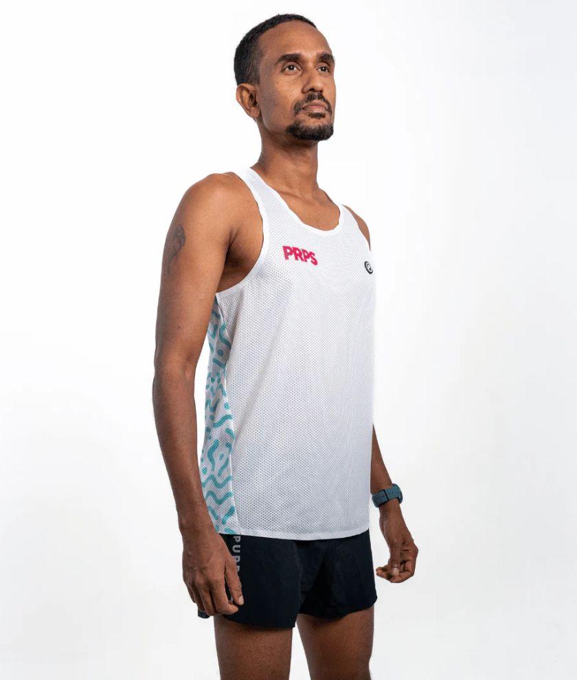 Official Team PRPS design with HYPERMESH™ PRO. Developed for running in hot and humid or dry conditions. These running tops are made of specially constructed fabric with the most advanced polyester and elastane weave technology. Designed to keep you cool for hours.
