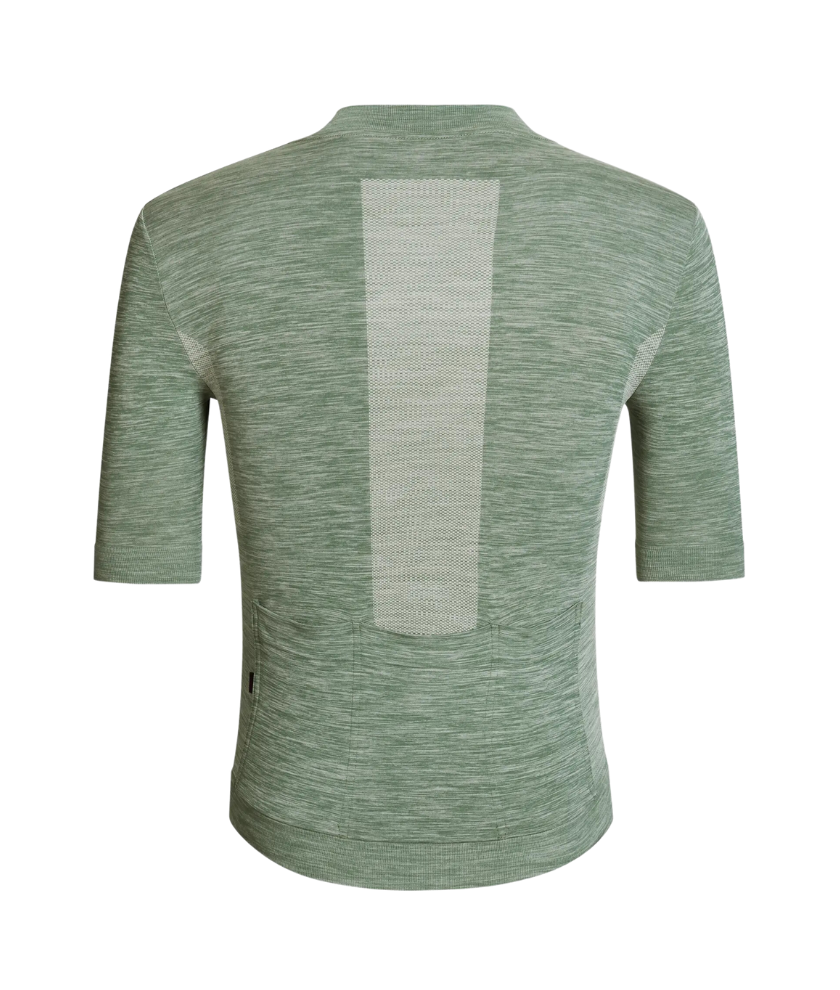 The fibres are combined with an environmentally friendly dyeing process to create a distinct melange effect, giving this jersey a varied mixture in its appearance and its applications. The fabric’s inherent softness, breathability, and quick-drying properties make this piece equally adept to fast-paced road rides and multi-day gravel adventures. The lighter density knit weave on the side panels and center back panel allows for improved breathability in areas of elevated moisture production.