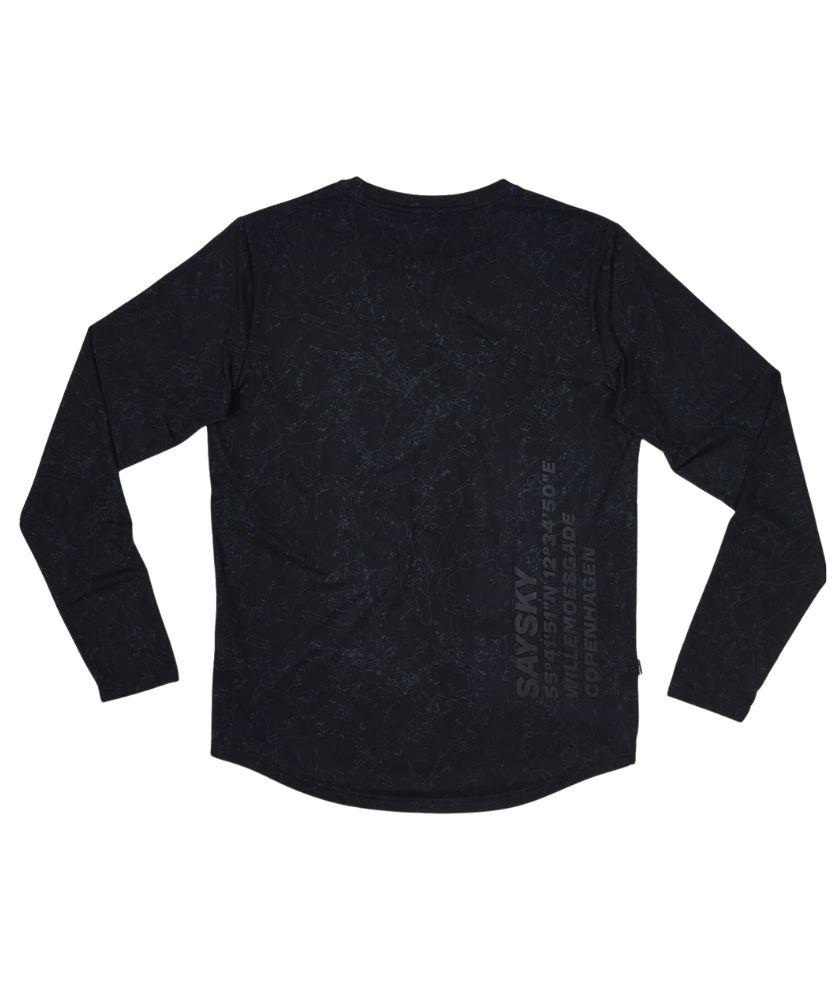 The SAYSKY Map Blaze Long Sleeve is a men's running t-shirt with the Copenhagen Origins all-over print. It comes with black SAYSKY logos on the front and back right hip. The fit is regular and designed to provide you with comfort and a high level of performance on the run. The shirt comes with a reflective print on the back.