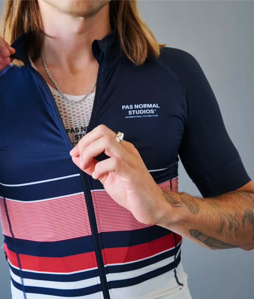 The Mechanism Jersey showcases the seamless integration of technical performance with fashionable aesthetics. Defined through its aerodynamic fit and use of lightweight fabric, the jersey is perfectly suited to competitive races or fast-paced training days while remaining a staple for your everyday summer rides.