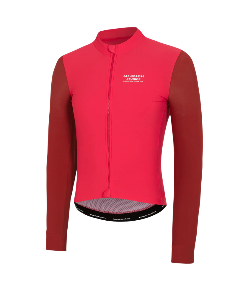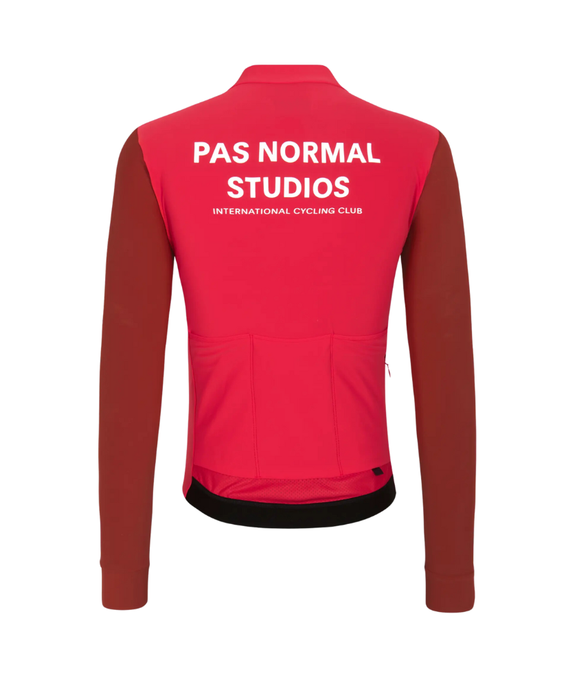 The Mechansim Long Sleeve Jersey is suitable for layering or as a standalone jersey. All through the seasons. The Mechanism Long Sleeve Jersey exhibits the Pas Normal Studios mentality of seamlessly combining visual aesthetics with quality, technical apparel. The soft fleece-backed fabric makes the Mechanism Long Sleeve Jersey perfect for both high-intensity training and racing. Use it as a standalone outer layer on chill mornings or late afternoons. Or pair it with a heavier base layer and a gilet or jacket when the temperature drops.
